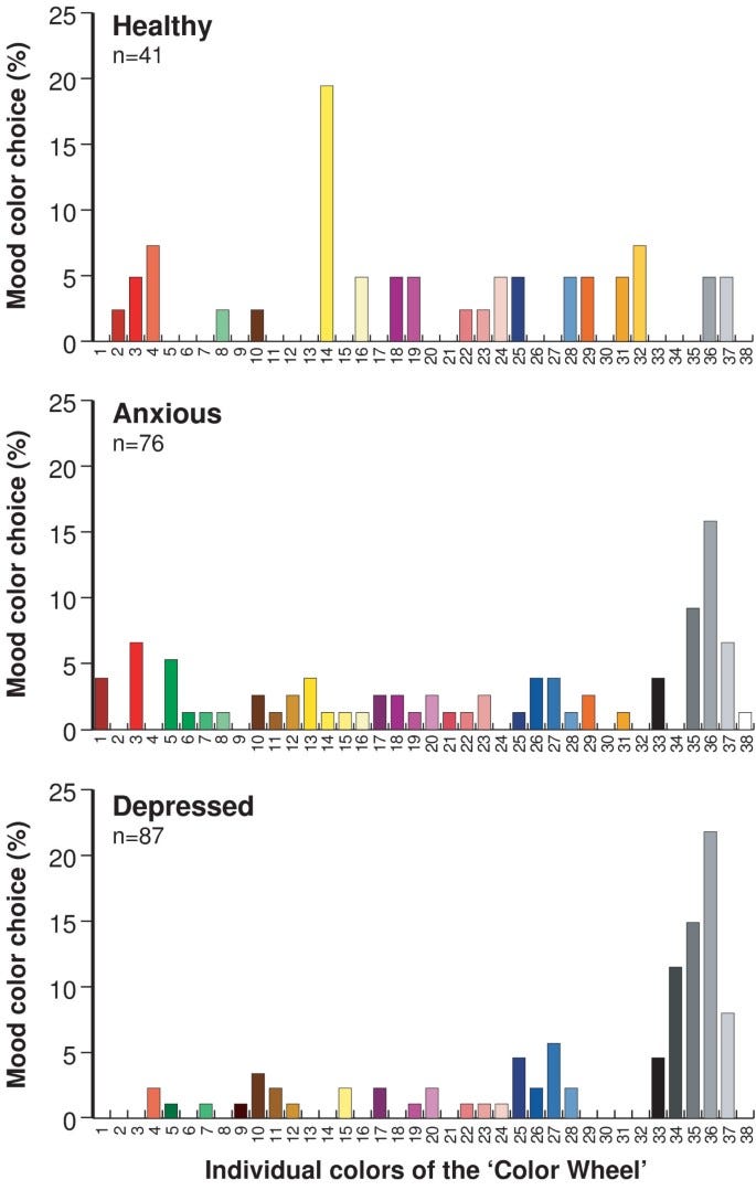 Because color, or the lack of it, makes us unhappy. Here are the color charts picked by - Healthy, Anxious & Depressed subjects.